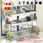 水切りラック シンク上 2段 スリム 付属品充実 上下左右伸縮 US304ステレンス×一年保証 誕生日プレゼント ギフト水切りかご幅54〜94cm高さ71.5〜…
