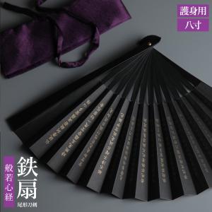 扇子 鉄扇8寸 般若心経 尾形刀剣 TS-B 鉄の扇子 黒 袋付き 箱入り プレ…