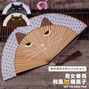 扇子 猫 可愛い お洒落 和風 ねこ ネコ柄 ドット 竹 絹 高級 メンズ レデ…