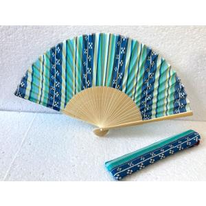 沖縄扇子 ミンサー 風結 カバー付き 青 扇 おうぎ