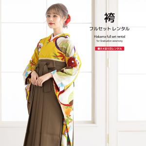 レンタル 卒業式 袴 女性 袴セット 黄色 イエロー 金 茶色 扇子 松 梅 菊…