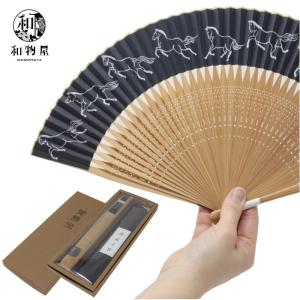 京扇子 メンズ 男性 おしゃれ 高級 馬九行く うまくいく 左馬 紳士用 黒せん…