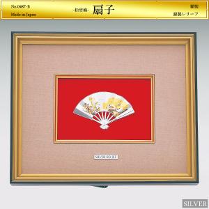 扇子 松竹梅|銀製レリーフ額装 3号