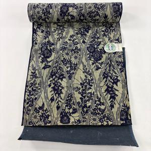 反物 優品 浴衣 草花 茶緑色 綿 中古