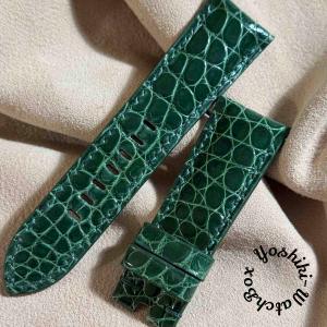 cro-1861 クロコダイル グロス仕上げ レザー 腕時計 ベルト グリーン…